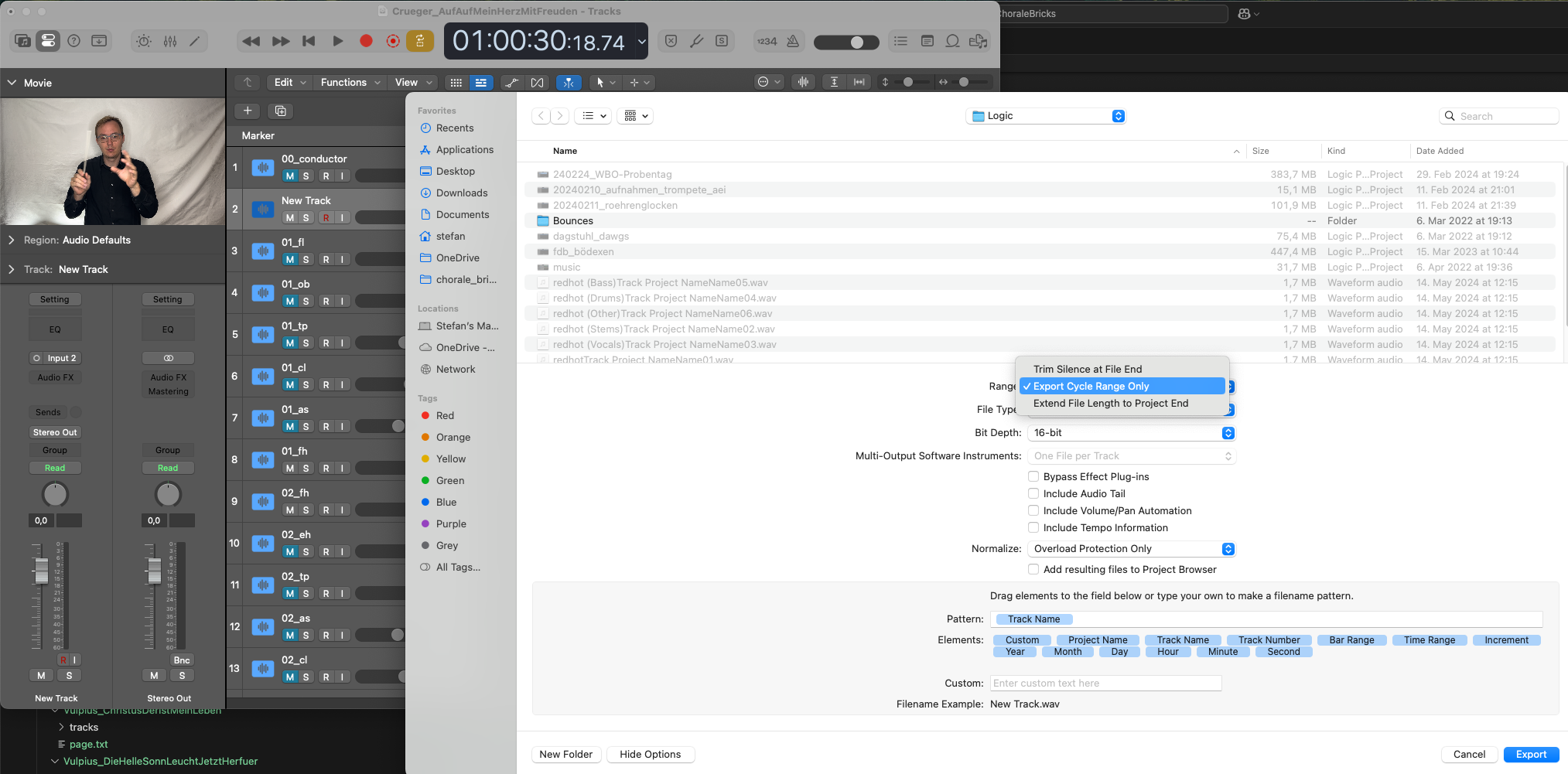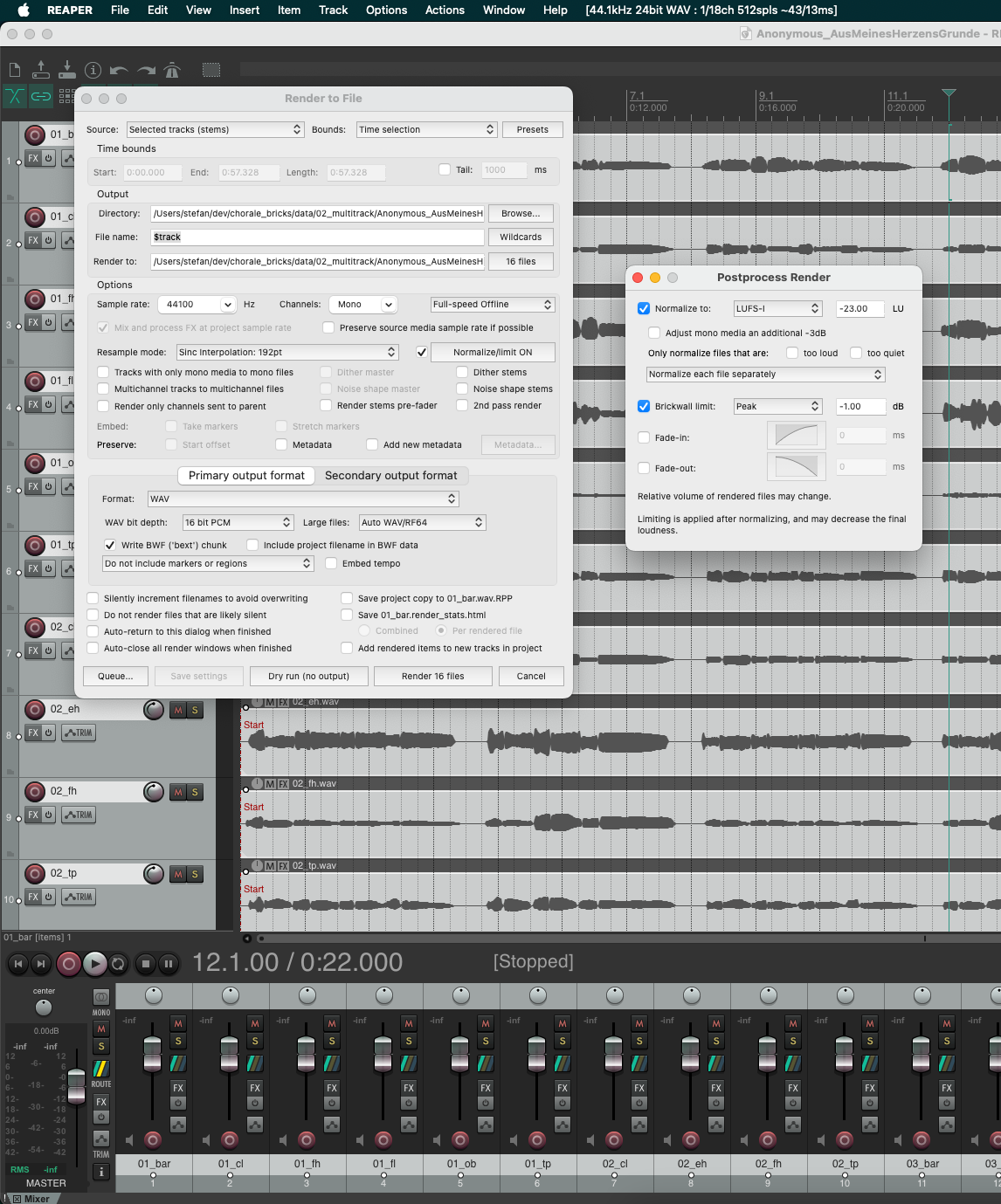 - Export the final tracks as 44.1 kHz WAV-files, 16 Bit (in Logic, we used markers to make sure all tracks have equal length).