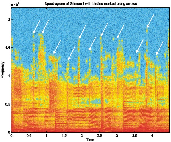 In other cases, however, the artifacts happen even within the lower part of the spectrum (see Figure 3) and severe bandwidth limitation would be required to achieve sufficient quality in the transmitted audio range. Listen to the following files low pass filtered to 8 kHz and observe that not every coded file has become a birdies-free sound.