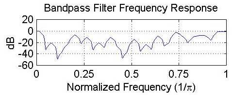 Additionally, the bandpass filter used for the analysis is included. This filter was applied directly in the time domain, and was used as the prototype filter to generate the compressed-domain filters.