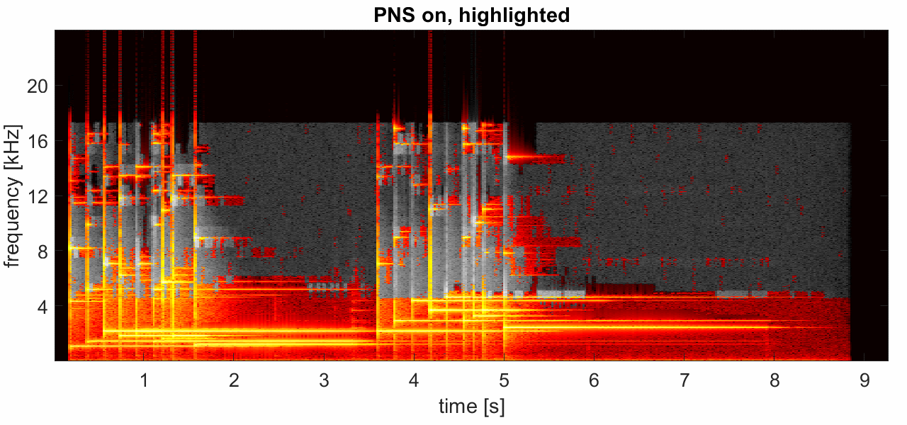 In Figure 1, the influence of the different control schemes is illustrated for the glockenspiel by marking spectral parts that have been substituted by PNS in grey. Click on the individual plots to toggle between highlighting of PNS on/off and original spectrum.