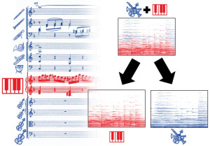 | In this work, we address the novel and rarely considered source separation task of decomposing piano concerto recordings into separate piano and orchestral tracks. Being a genre written for a pianist typically accompanied by an ensemble or orchestra, piano concertos often involve an intricate interplay of the piano and the entire orchestra, leading to high spectro–temporal correlations between the constituent instruments. Moreover, in the case of piano concertos, the lack of multi-track data for training constitutes another challenge in view of data-driven source separation approaches. As a basis for our work, we adapt existing deep learning (DL) techniques, mainly used for the separation of popular music recordings. In particular, we investigate spectrogram- and waveform-based approaches as well as hybrid models operating in both spectrogram and waveform domains. As a main contribution, we introduce a musically motivated data augmentation approach for training based on artificially generated samples. Furthermore, we systematically investigate the effects of various augmentation techniques for DL-based models. For our experiments, we use a recently published, open-source dataset of multi-track piano concerto recordings. Our main findings demonstrate that the best source separation performance is achieved by a hybrid model when combining all augmentation techniques. | ![]() |