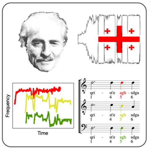 | The analysis of recorded audio sources has become increasingly important in ethnomusicological research. Such audio material may contain important cues on performance practice, information that is often lost in manually generated symbolic music transcriptions. In collaboration with Frank Scherbaum (Universität Potsdam, Germany), we considered a musically relevant audio collection that consists of more than 100 three-voice polyphonic Georgian chants. These songs were performed by Artem Erkomaishvili (1887–1967)—one of the last representative of the master chanters of Georgian music—in a three-stage recording process. This website provides the segment annotations as well as the F0 annotations for each of the songs in a simple CSV format. Furthermore, visualizations and sonifications of the F0 trajectories are provided. | ![]() |