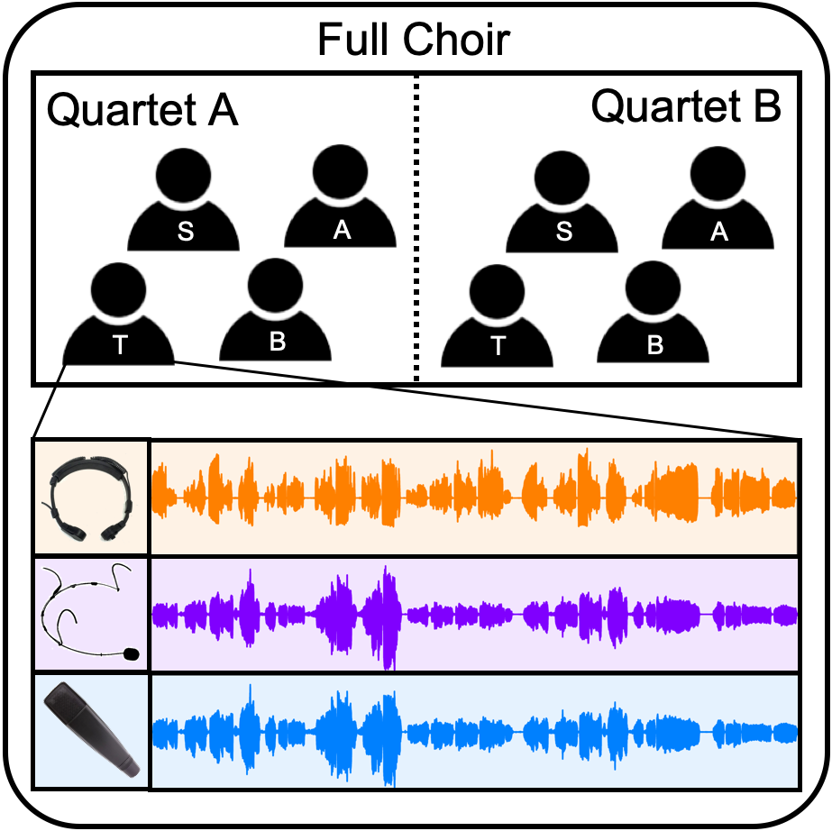 | Choral singing is a central part of musical cultures across the world, yet many facets of this widespread form of polyphonic singing are still to be explored. Music information retrieval (MIR) research on choral singing benefits from multitrack recordings of the individual singing voices. However, there exist only few publicly available multitrack datasets on polyphonic singing. In this paper, we present Dagstuhl ChoirSet (DCS), a multitrack dataset of a cappella choral music designed to support MIR research on choral singing. The dataset includes recordings of an amateur vocal ensemble performing two choir pieces in full choir and quartet settings. The audio data was recorded during an MIR seminar at Schloss Dagstuhl using different close-up microphones to capture the individual singers’ voices. | ![]() |