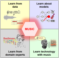 The revolution in music distribution, storage, and consumption has fueled tremendous interest in developing techniques and tools for organizing, analyzing, retrieving, and presenting music-related data. As a result, the field of music information retrieval (MIR) has matured over the last 20 years into an independent research area related to many different disciplines, including signal processing, machine learning, information retrieval, musicology, and the digital humanities. This project aims to break new ground in technology and education in these disciplines using music as a challenging and instructive multimedia domain. The project is unique in its way of approaching and exploring the concept of learning from different angles. First, learning from data, we will build on and advance recent deep learning (DL) techniques for extracting complex features and hidden relationships directly from raw music signals. Second, by learning from the experience of traditional engineering approaches, our objective is to understand better existing and to develop more interpretable DL-based systems by integrating prior knowledge in various ways. In particular, as a novel strategy with great potential, we want to transform classical model-based MIR approaches into differentiable multilayer networks, which can then be blended with DL-based techniques to form explainable hybrid models that are less vulnerable to data biases and confounding factors. Third, in collaboration with domain experts, we will consider specialized music corpora to gain a deeper understanding of both the music data and our models' behavior while exploring the potential of computational models for musicological research. Fourth, we will examine how music may serve as a motivating vehicle to make learning in technical disciplines such as signal processing or machine learning an interactive pursuit. Through our holistic approach to learning, we want to achieve significant advances in the development of explainable hybrid models and reshape how recent technology is applied and communicated in interdisciplinary research and education.