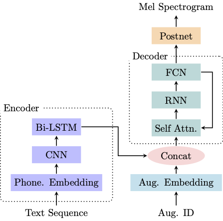 The following audio examples are synthesized with the baseline Tacotron-2 [1] or the proposed Tacotron-2 with augmentation embedding for different training scenarios.
