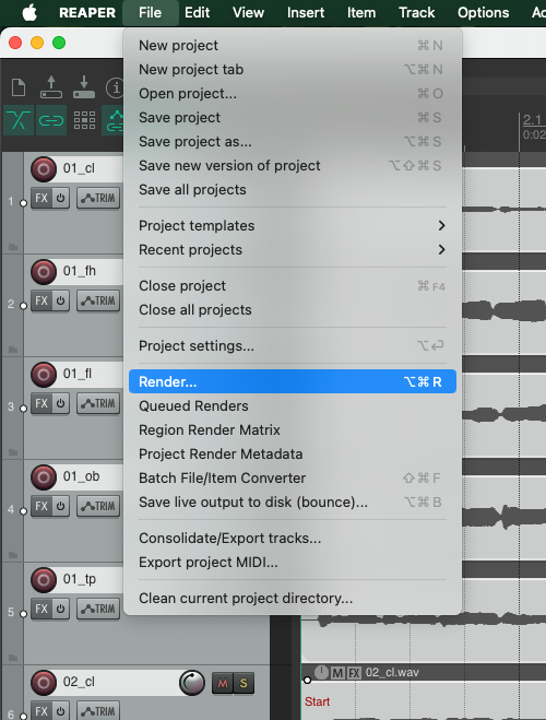 - Export the final tracks as 44.1 kHz WAV-files, 16 Bit (in Logic, we used markers to make sure all tracks have equal length).