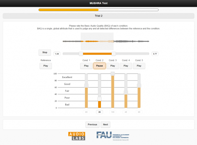 Listening tests are widely used to assess the quality of audio systems. In the last few years, conducting listening tests over the Internet, as so called web-based experiments, has become popular. Until now, it was only possible to implement a limited number of listening test types as web-based experiments because web standards were missing some crucial features, e.g. sample manipulation of audio streams. MUSHRA tests are designed to compare the audio quality of several test conditions with intermediate impairments to a high quality reference. With the upcoming of the Web Audio API, for the first time MUSHRA experiments can be carried out within the web browser while at the same time being compliant to the ITU-R Recommendation BS.1534 (MUSHRA).